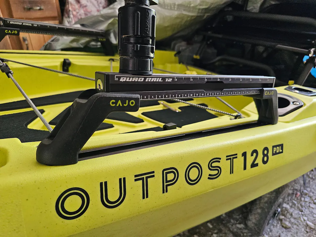 The CAJO Quad Rail is your all-in-one mounting solution for limitless configuration. Whether you’re building a captain’s bridge, fishing dashboard, or streamlined handrails, the Quad Rail delivers 360° rigging potential with T-bolt gear tracks on all four sides. Each aluminum rail stands 3” tall to keep your gear elevated, secure, and ready in rough water. A built-in ruler adds quick measuring utility, and adjustable mounting posts ensure it fits nearly any kayak whether you’re using gear tracks or the included through-hull hardware.